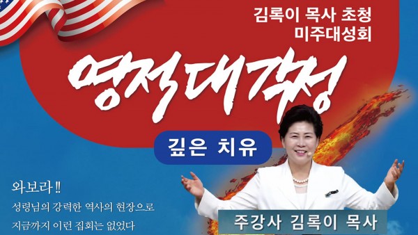 한국에서 큰 부흥을 일으키고 있는 김록이 목사(그레이스힐링교회)는 오는 10월11일부터 15일까지 미주 영적대각성 집회를 갖는다.