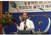 - ▲밤 늦은 시간에도 많은 성도들이 집회에 참석을 하는 성황을 이룬 반봉혁 장로가 말씀을 전하고 있다.