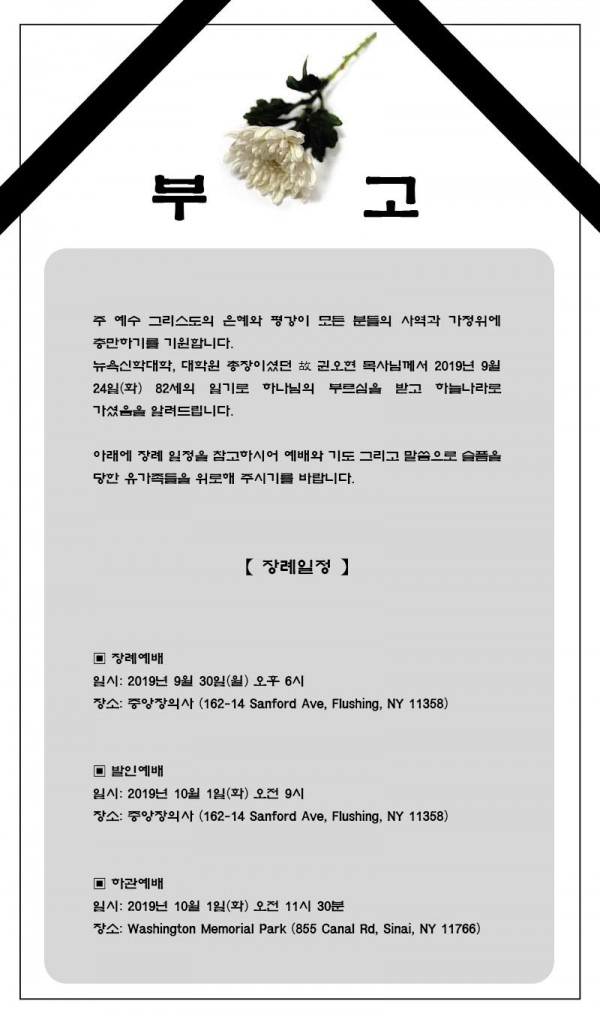 (고) 권오현 목사, 장례예배 안내 > 나눔과소통